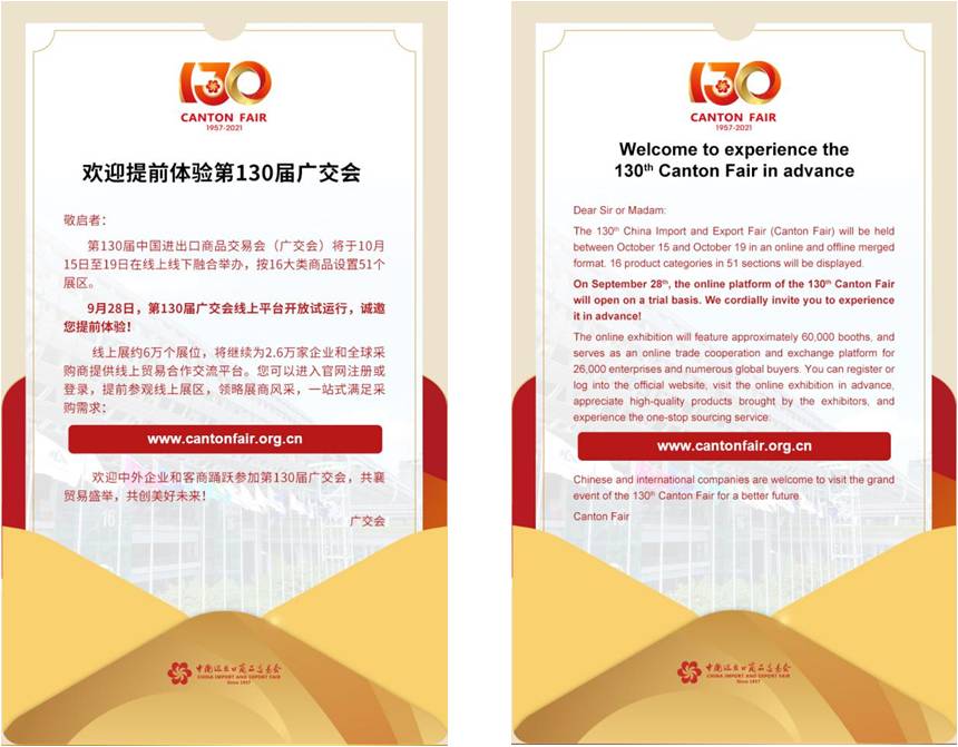 At present, the exhibition area of each session totals 1.185 million square meters and the number of exhibitors from home and abroad stands at nearly 26,000. In each session, about 200,000 buyers attend the Fair and make transactions worth about USD 30 billion. As a response to the global pandemic of corona virus since 2020, the Canton Fair has been successfully held online for 3 sessions. The 130th Canton Fair will be held between October 15 and October 19 in an online and offline merged format. The Fair will build a new platform featuring “buy from and sell to the world", which will enable Chinese and international companies to break the limit of time and space, and countries across the world to share new opportunities of China's manufacturing industry and the Chinese market.