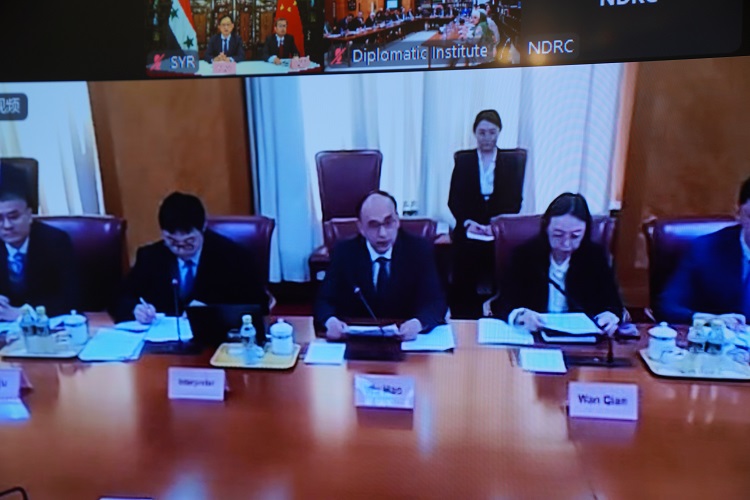 6月25-27日,中国—叙利亚经济发展领域治国理政经验交流研修班于线上举行。中国国家发展改革委秘书长伍浩、中国驻叙利亚大使史宏微、叙利亚计划与国际合作署副署长沙迪·阿里、叙利亚外交部亚非司司长泰马姆·苏莱曼出席开班仪式并致辞。驻叙使馆经济商务处迟洁超参赞陪同史大使参加有关活动。